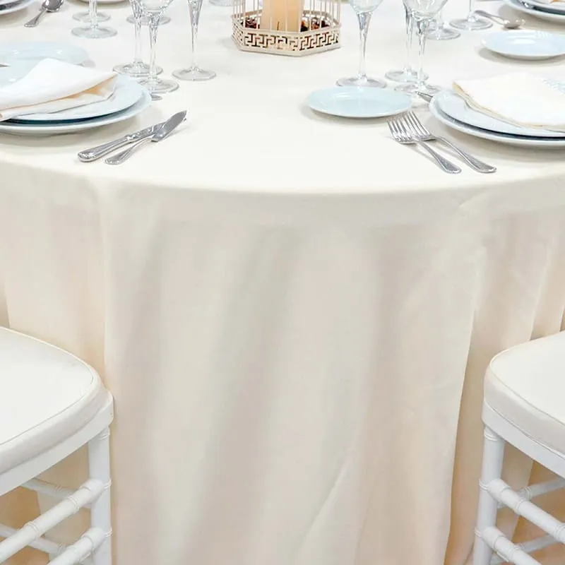 Alquiler de manteles para cualquier ocasión. Cree un ambiente de refinamiento con el Mantel Liso Marfil. Su tono suave y elegante añade un toque de sofisticación a cualquier mesa. Perfecto para bodas, cenas formales o eventos corporativos, este mantel liso proporciona una base elegante para sus decoraciones. Disponible en blanco y en negro.