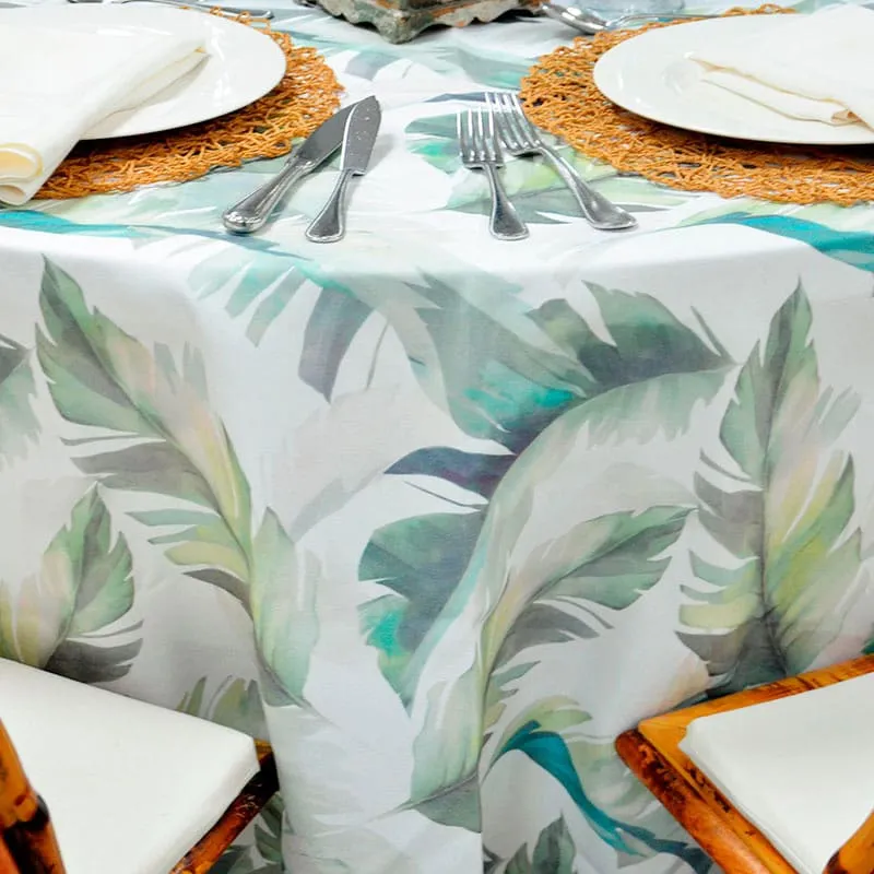 El mantel Palmeral le da un toque fresco y tropical a cualquier evento, perfecto para crear un ambiente elegante y moderno. Ideal para eventos al aire libre o temáticos. Manteles de alquiler en Madrid y Sevilla. Medidas: 3.60 x 3.60 m