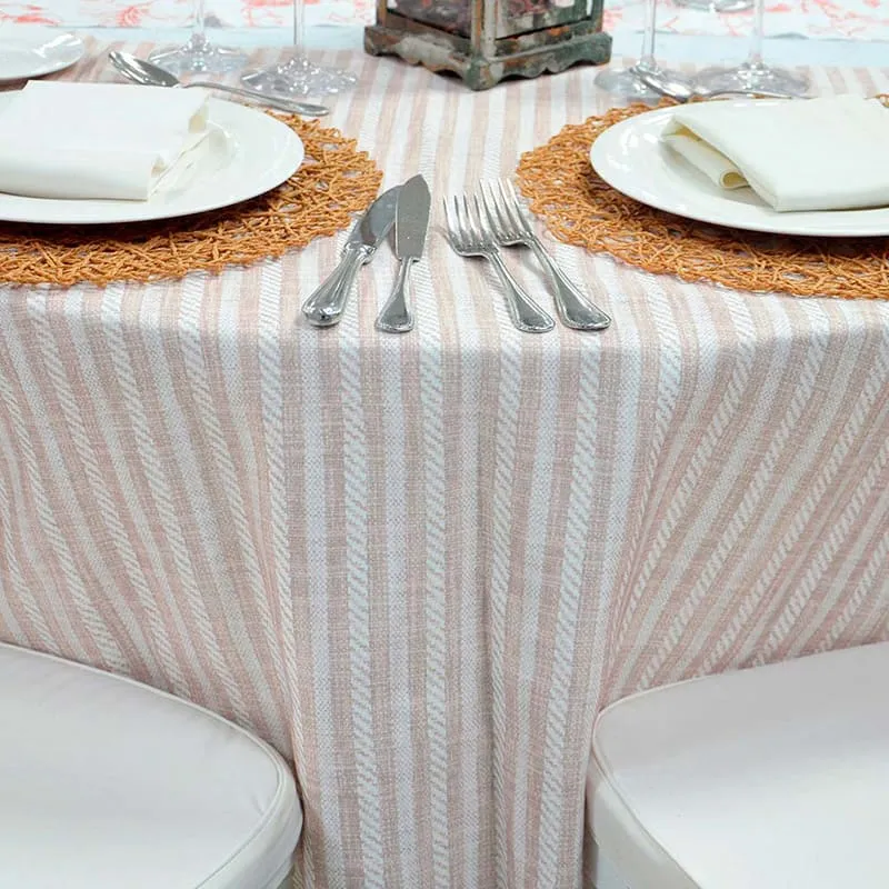 El Mantel Rayas Arena presenta una fusión armoniosa de blanco y marrón arena, perfecta para eventos con un estilo rústico bohemio. Este mantel añade un toque de encanto natural a cualquier ocasión. En Alquisur Eventos le ofrecemos el alquiler de manteles en toda la península.
