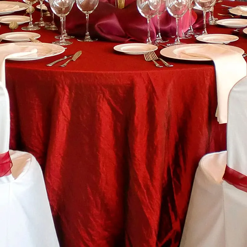 Descubra el alquiler de manteles para bodas, comuniones y eventos corporativos. Elegancia, distinción y entrega en toda la península. También tenemos disponibles lazos y servilletas para combinar con el mantel Taffeta Caldera. Diámetro: 3,60 m. Redondo.