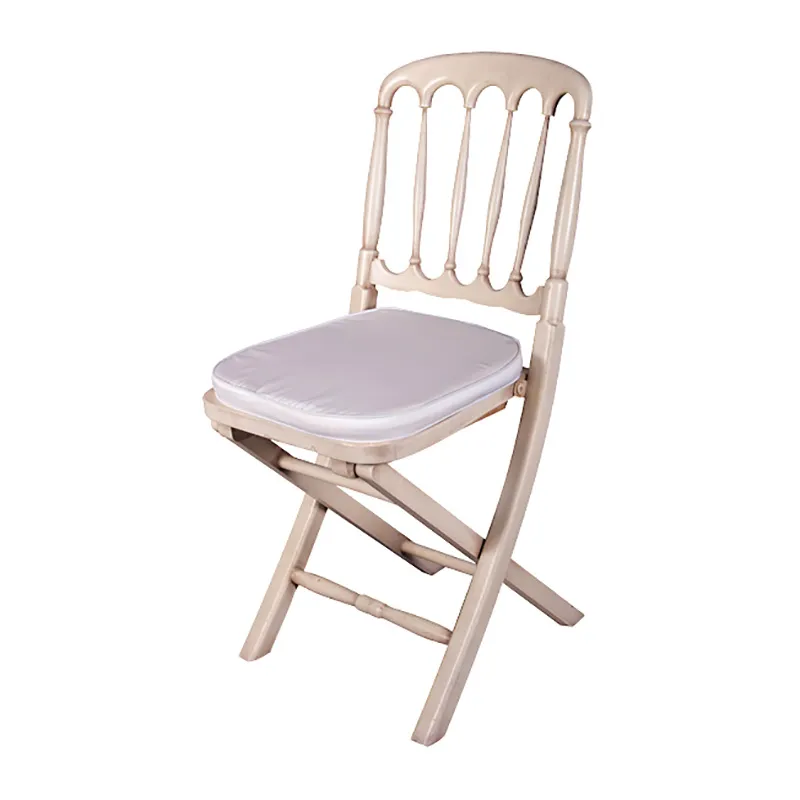 La Silla Napoleón Decapé Plegable es la aliada perfecta para quienes buscan un toque cálido, romántico y natural en la decoración de su evento. Confeccionada en madera de haya y con un acabado blanco decapado que resalta su carácter vintage. Para añadir confort disponemos de cojines opcionales.